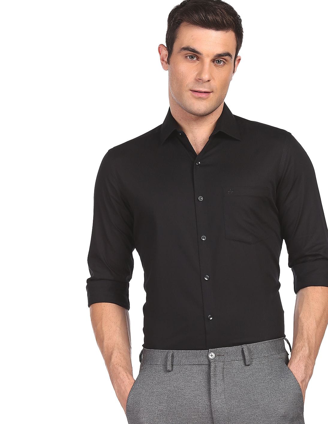 Mitered Cuff Patterned Formal Shirt