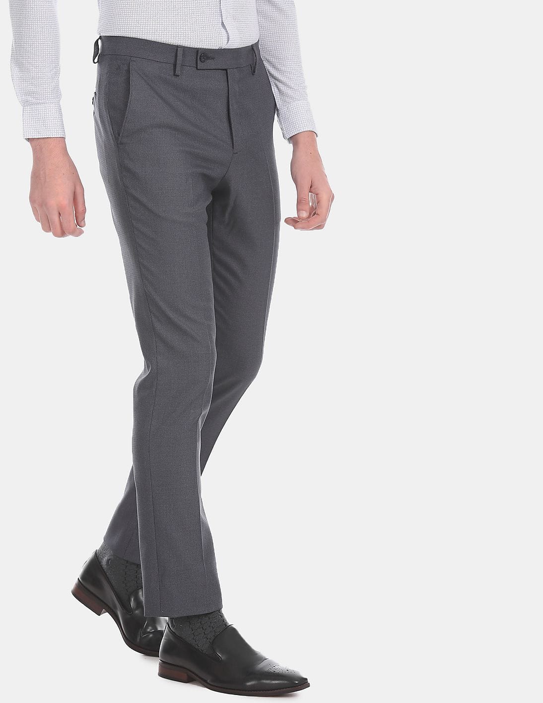 Tapered Fit Patterned Viscose Stretch Formal Trousers