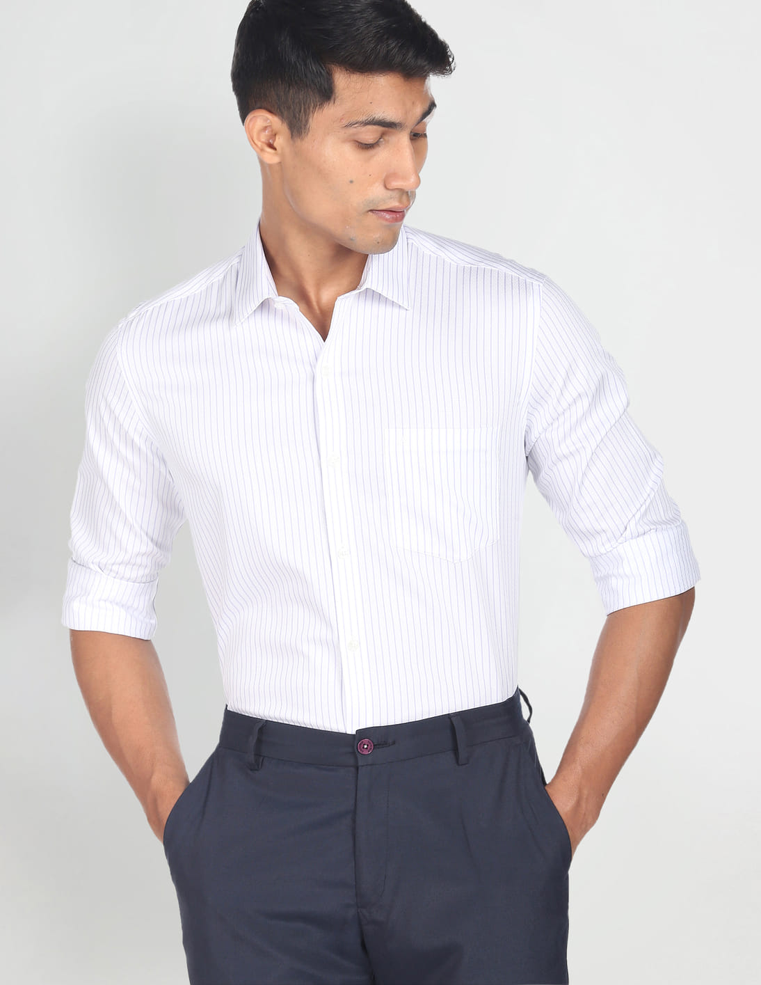 Auto Press Striped Cotton Formal Shirt