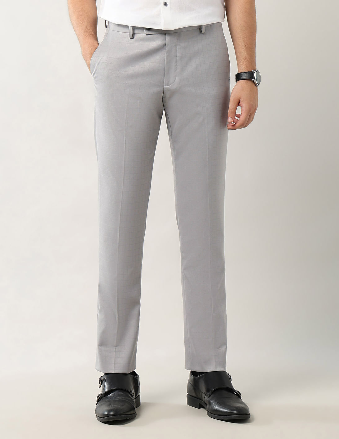 Mid Rise Textured Tapered Fit Trousers