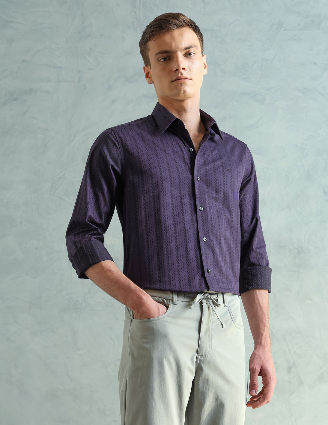 Self Design Vertical Stripe Dobby Shirt