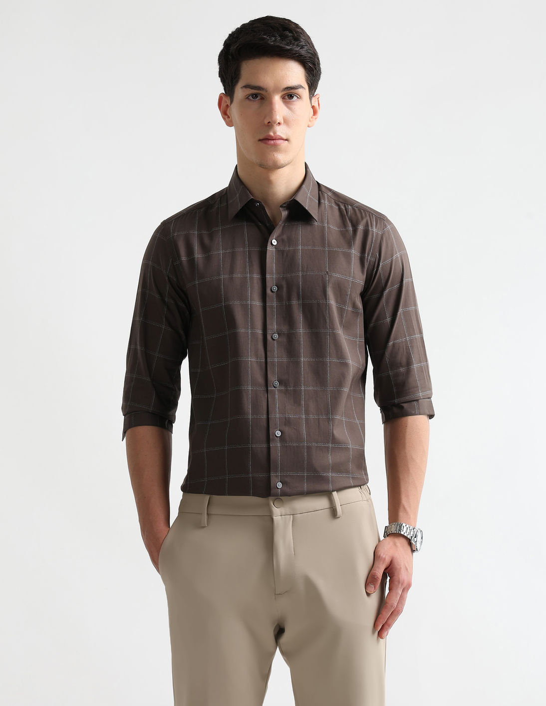 Windowpane Checked Manhattan Slim Fit Shirt