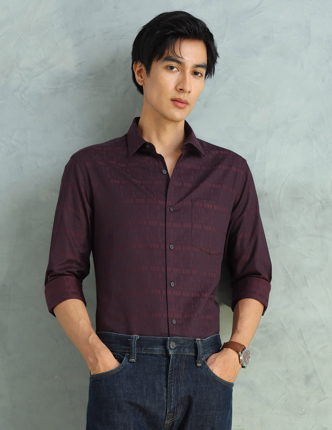 Self Design Geometric Slim Fit Shirt