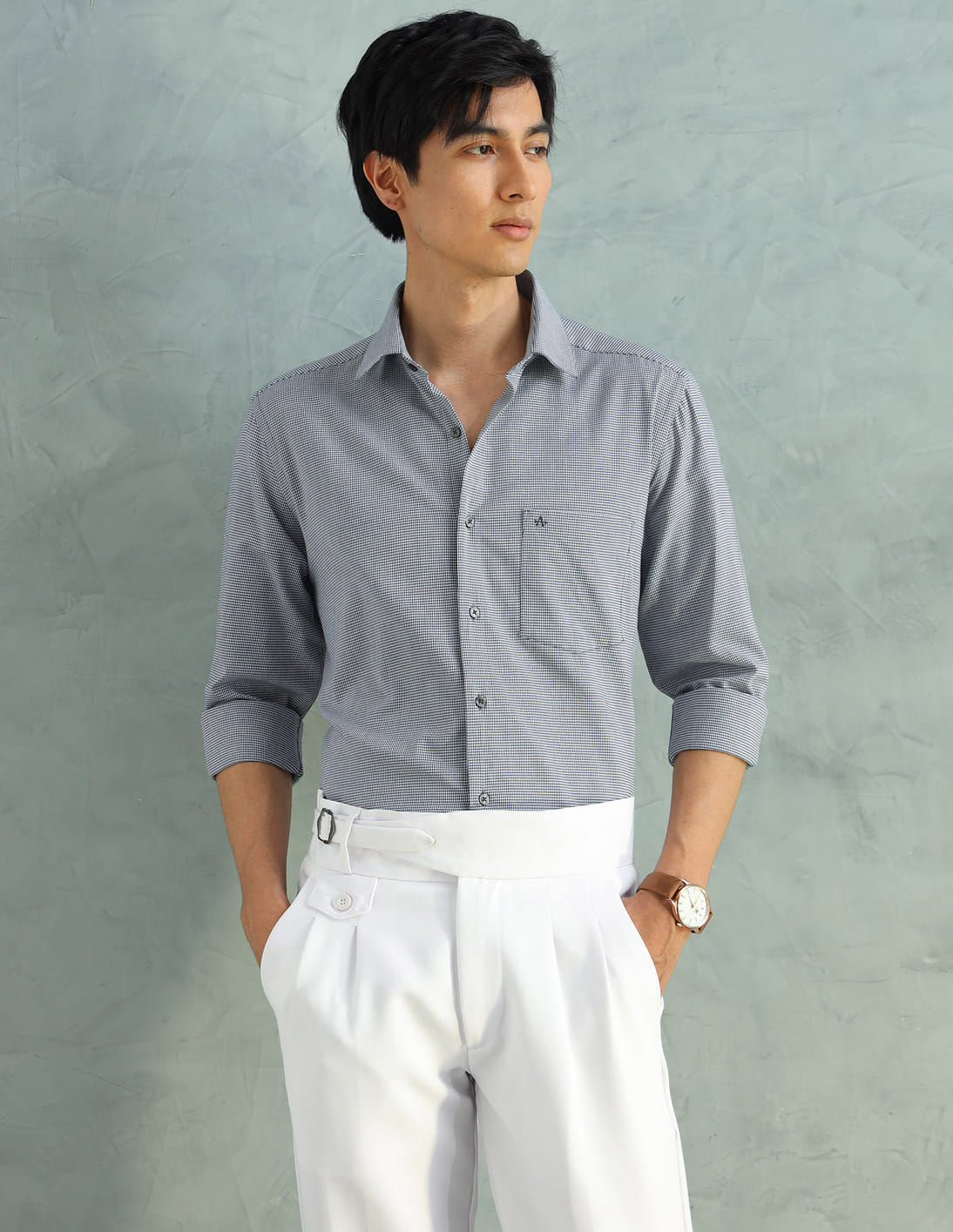 Self Design Houndstooth Slim Fit Shirt