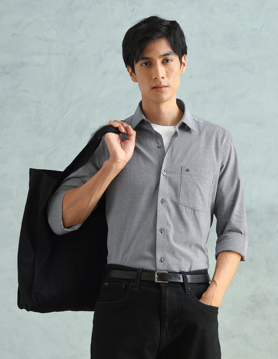 Self Design Houndstooth Slim Fit Shirt