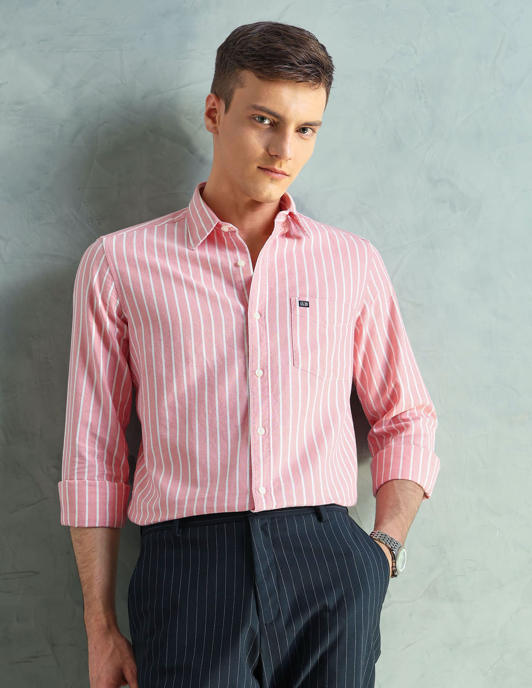 Self Design Vertical Striped Oxford Shirt