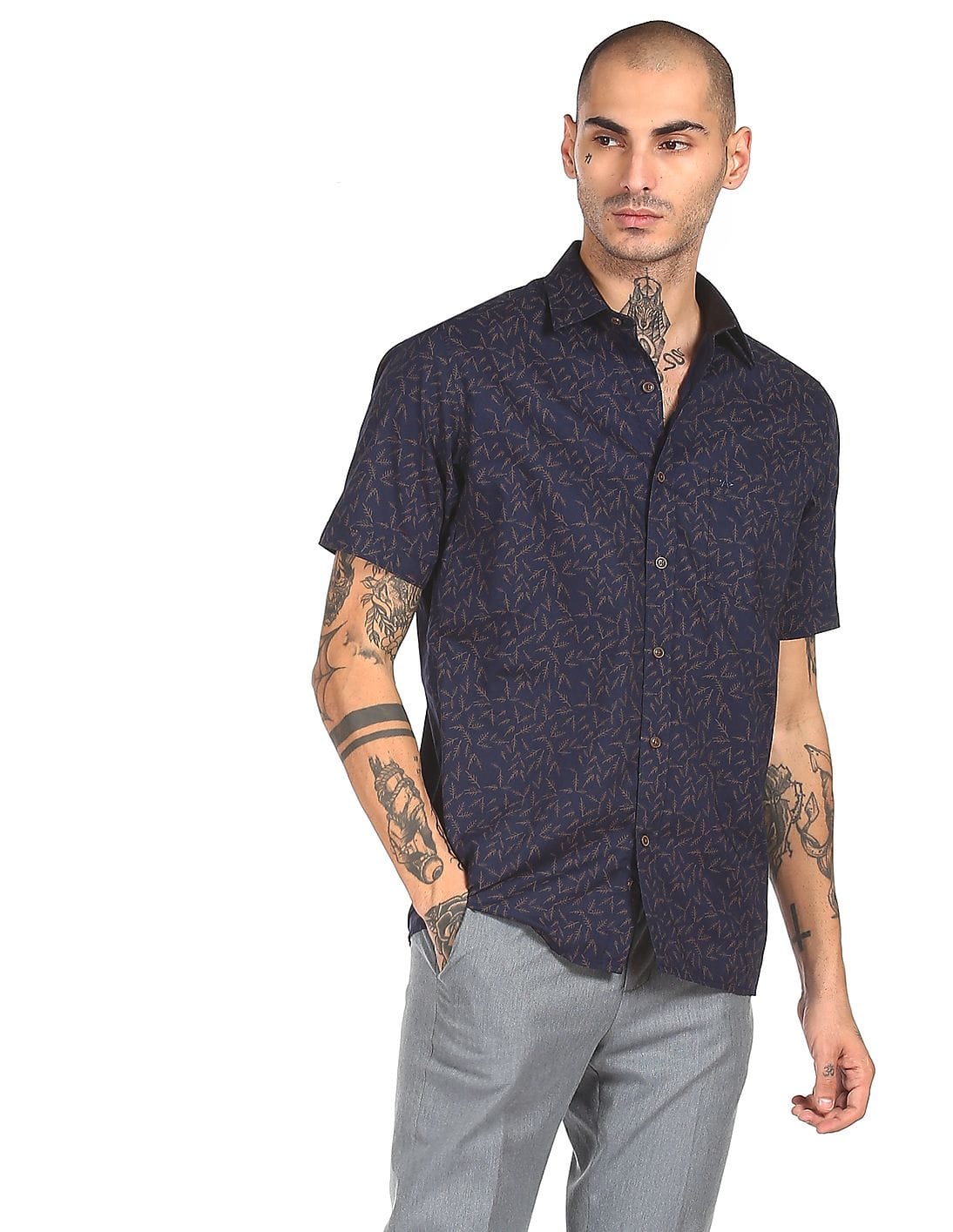 Spread Collar Leaf Print Shirt