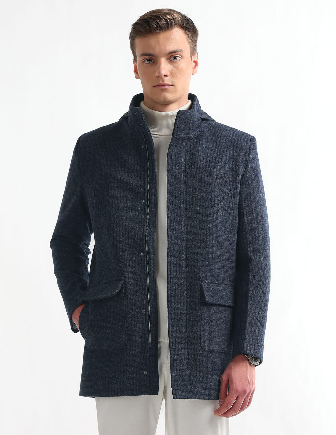 Packable Hood Textured Trench Coat