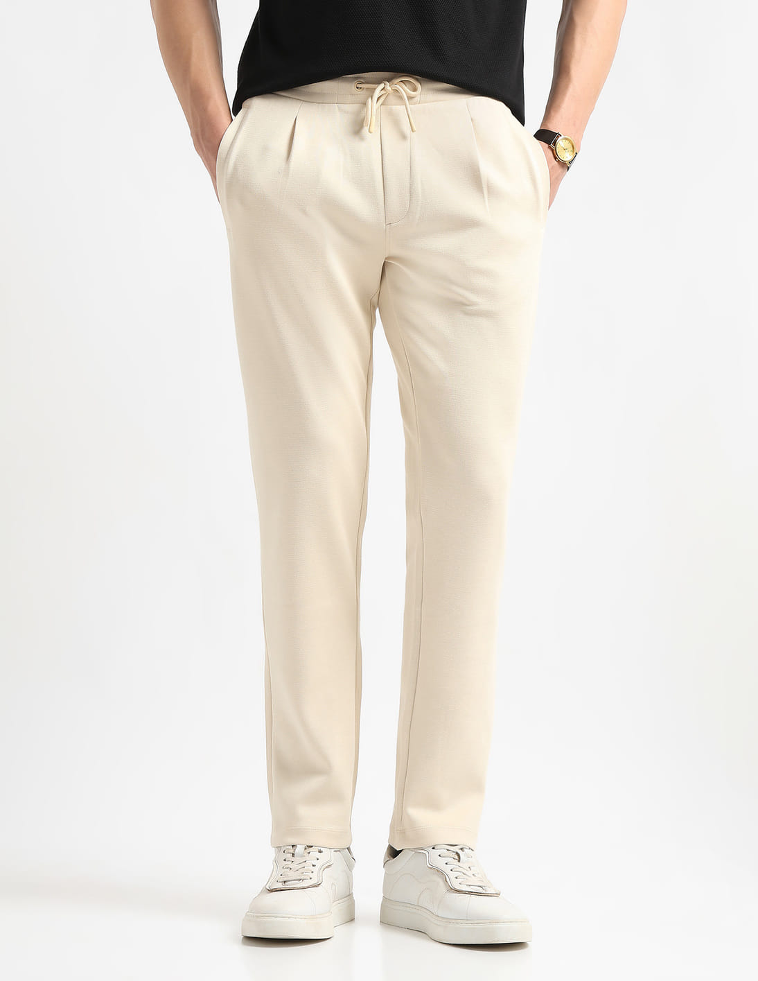 Pleated Front Mid Rise Track Pants