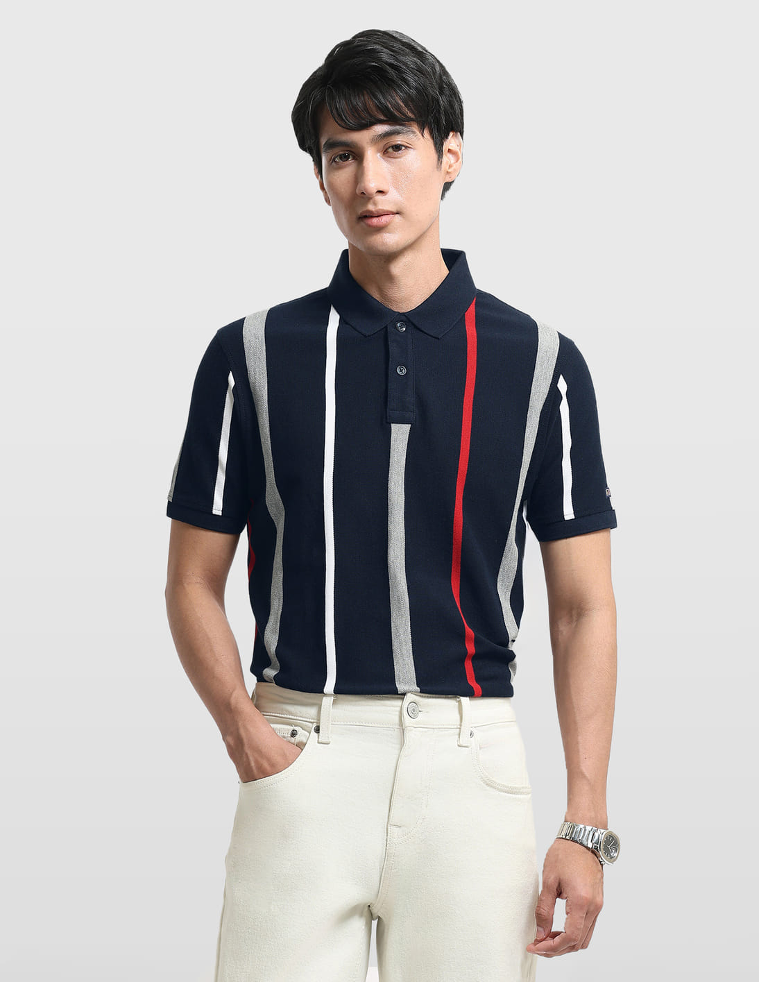 Self Design Vertical Striped Regular Fit Polo Shirt