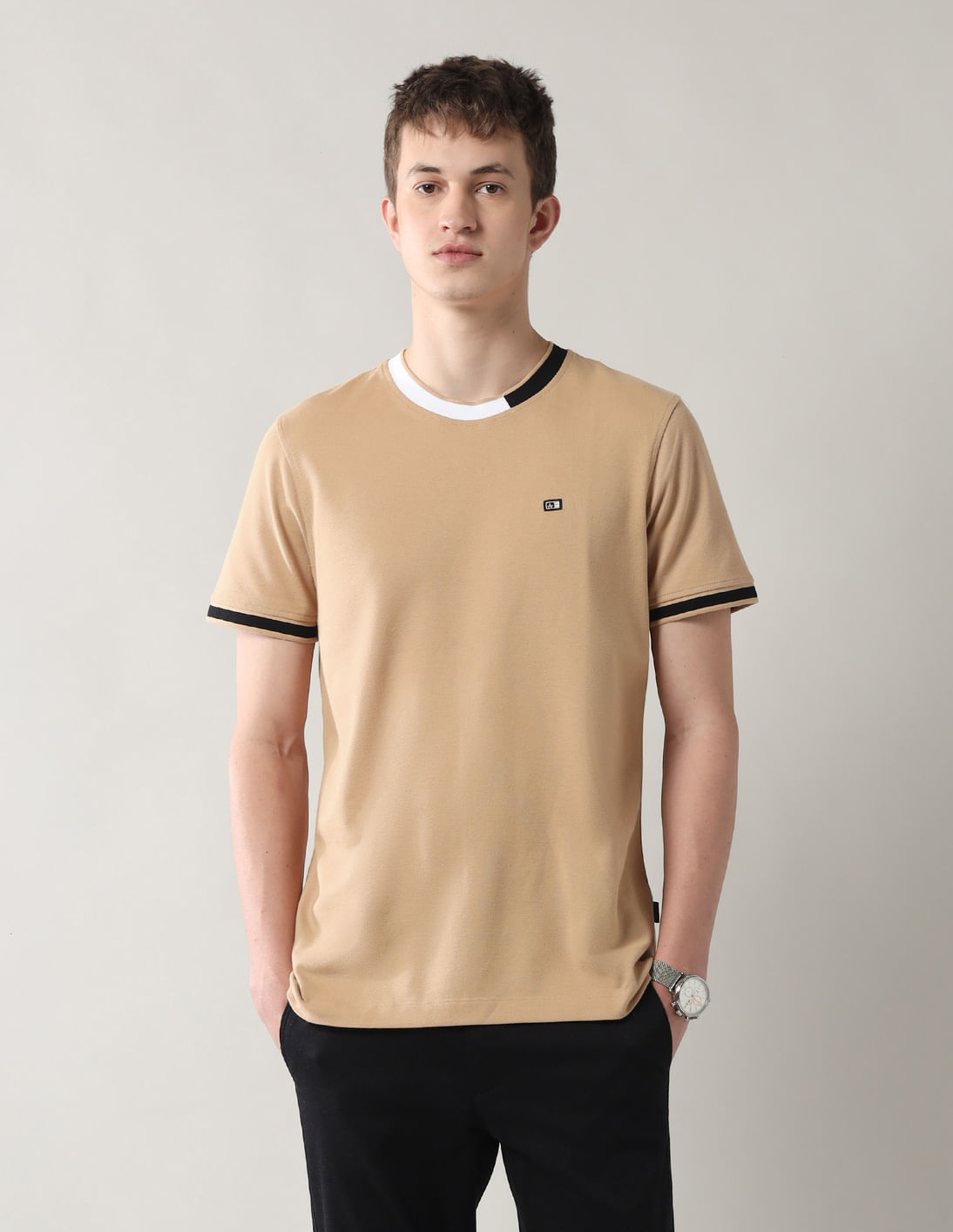 Solid Black White Beige T-Shirt