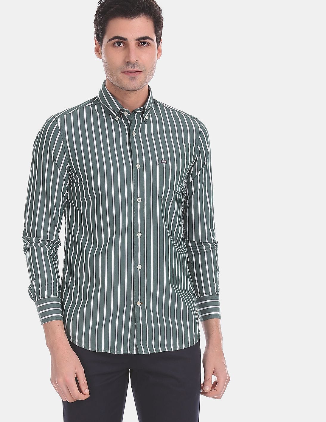 Button Down Collar Vertical Stripe Casual Shirt