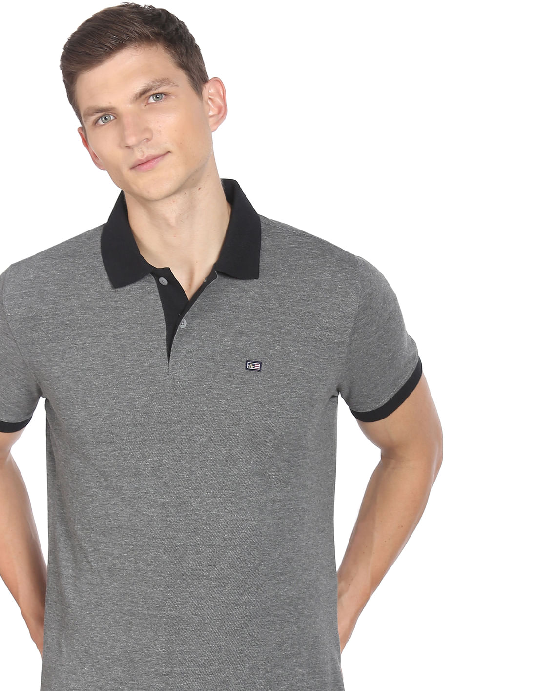 Ribbed Collar Heathered Compact Cotton Polo Shirt