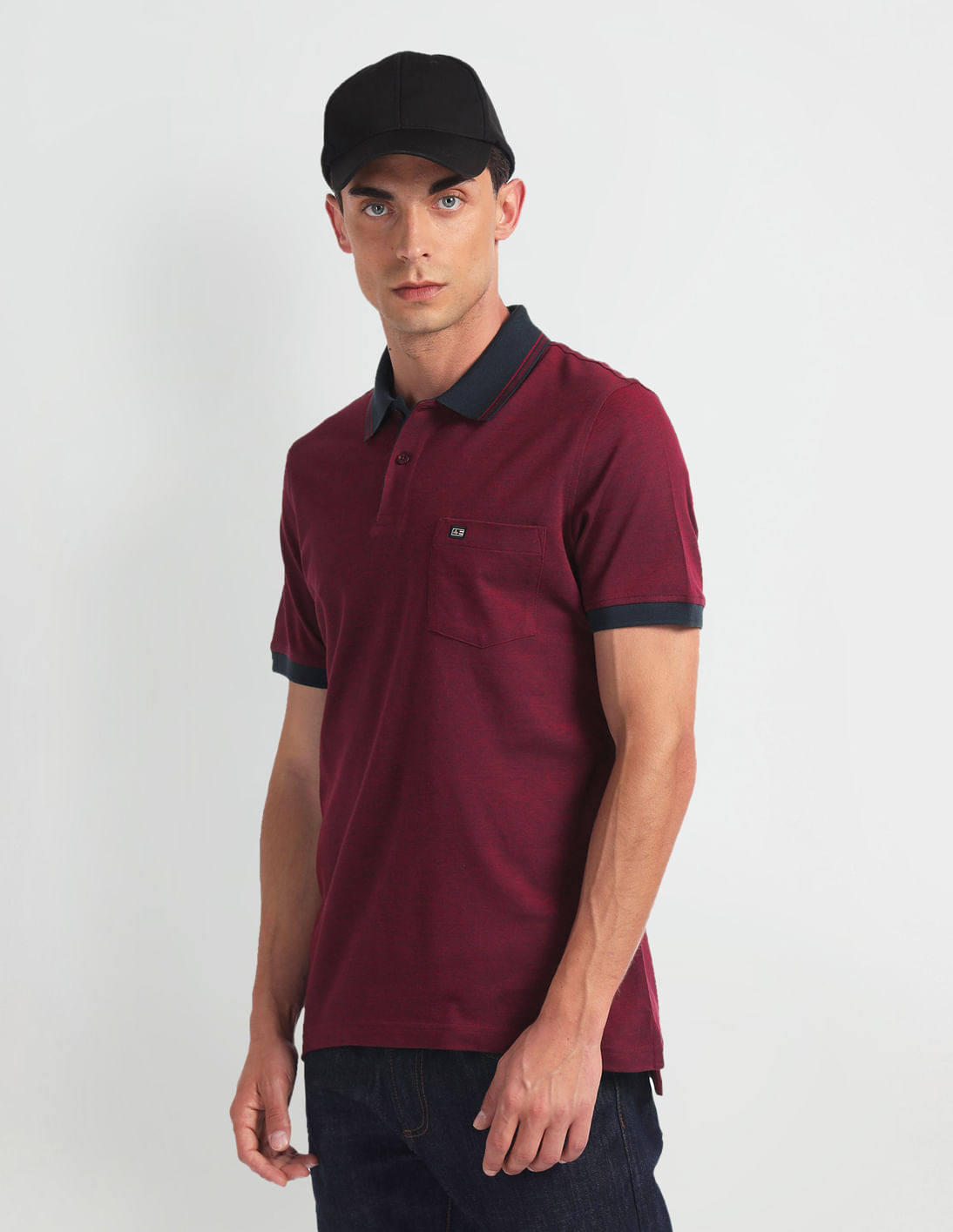 Patterned Collar Heathered Polo Shirt