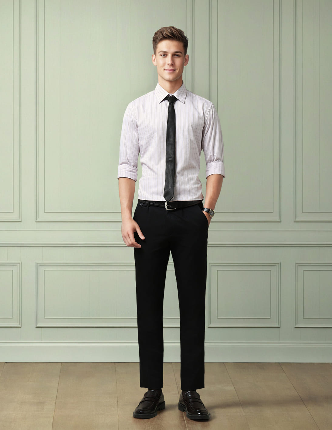 Tailored Fit Self Design Vertical Striped Shirt