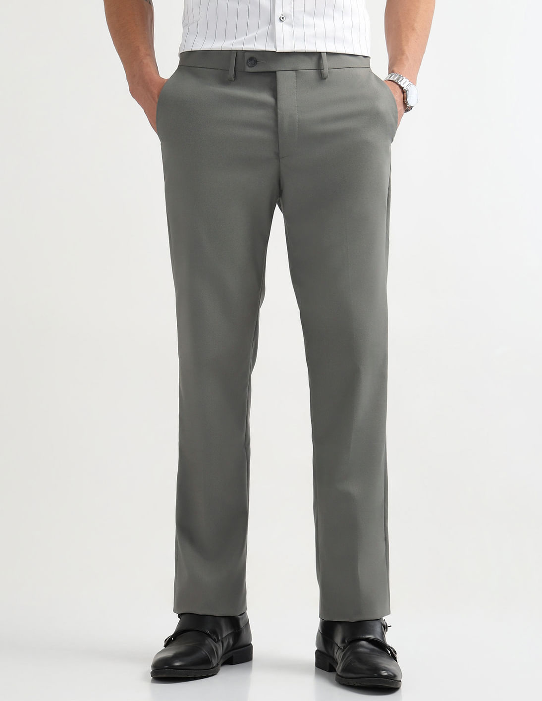 Textured Mid Rise Trousers