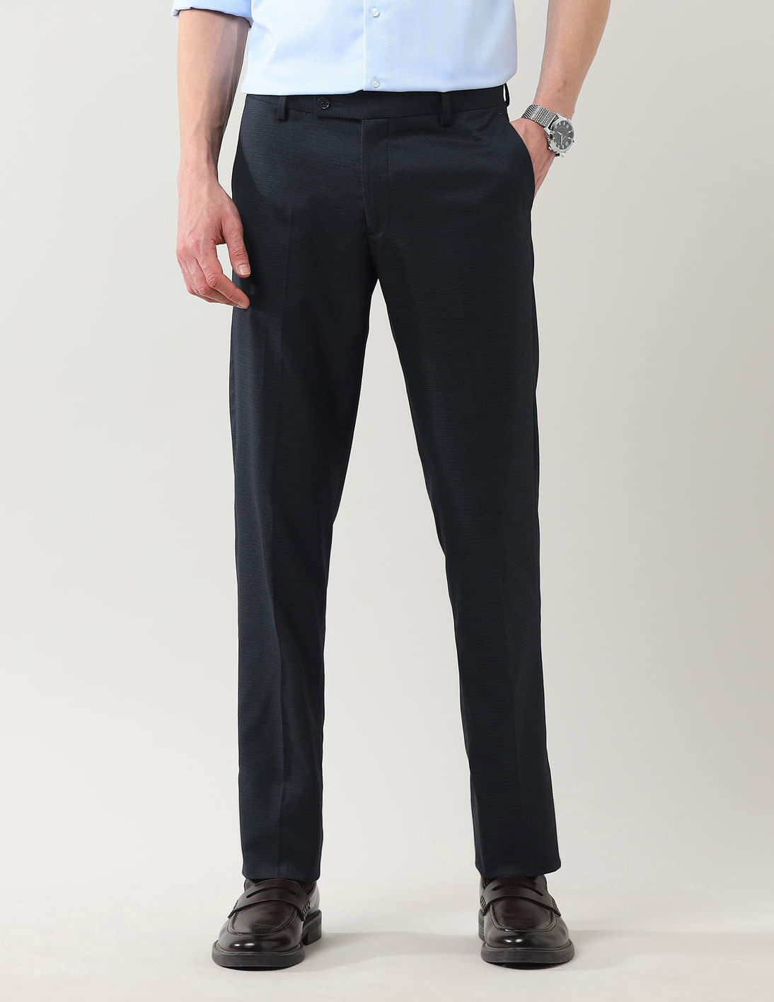 Textured Tapered Fit Twill Trousers
