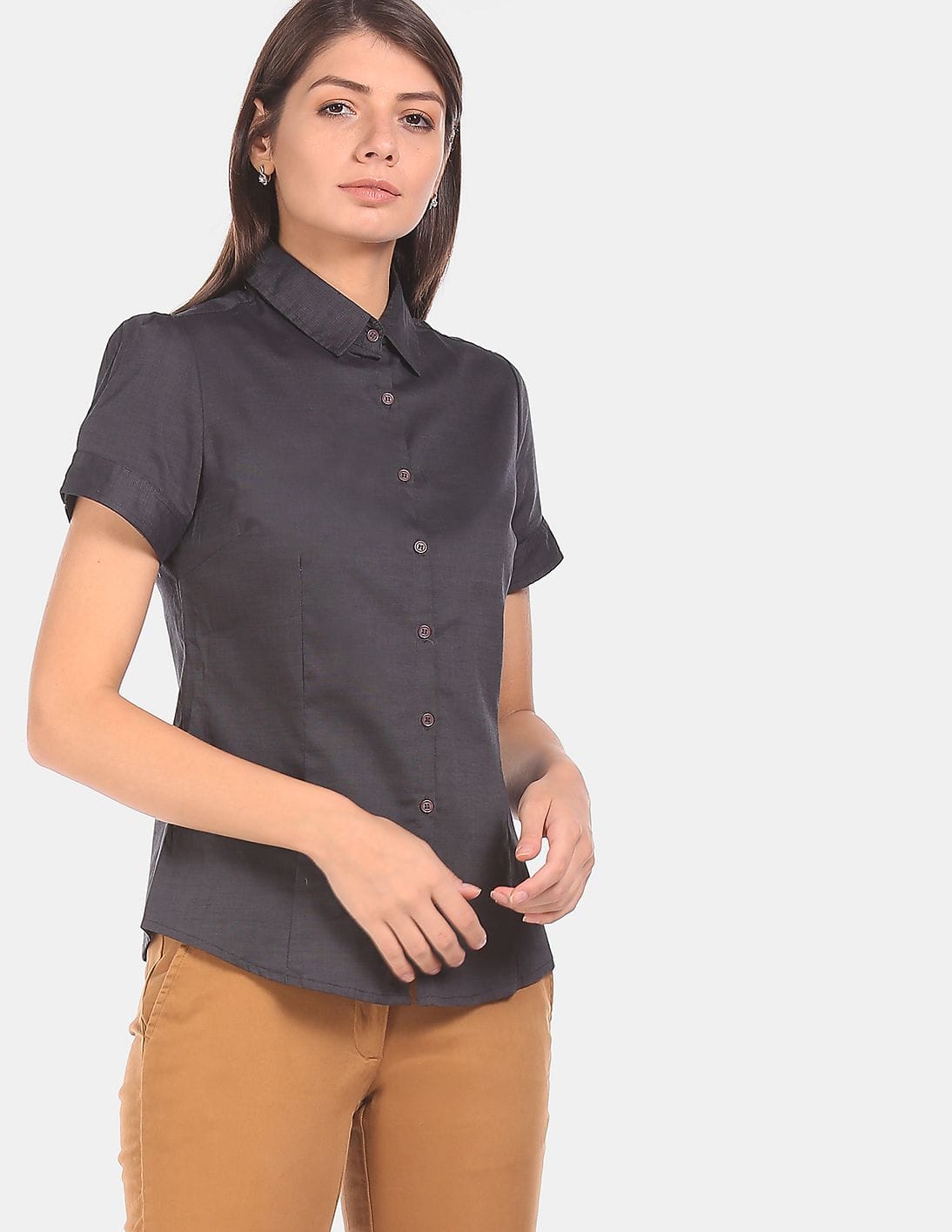 Short Sleeve Solid Cotton Formal Shirt