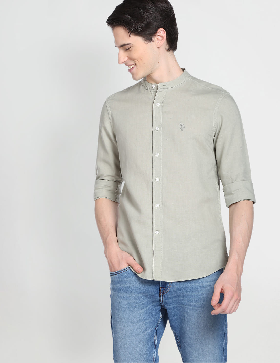 Mandarin Collar Overdyed Solid Shirt