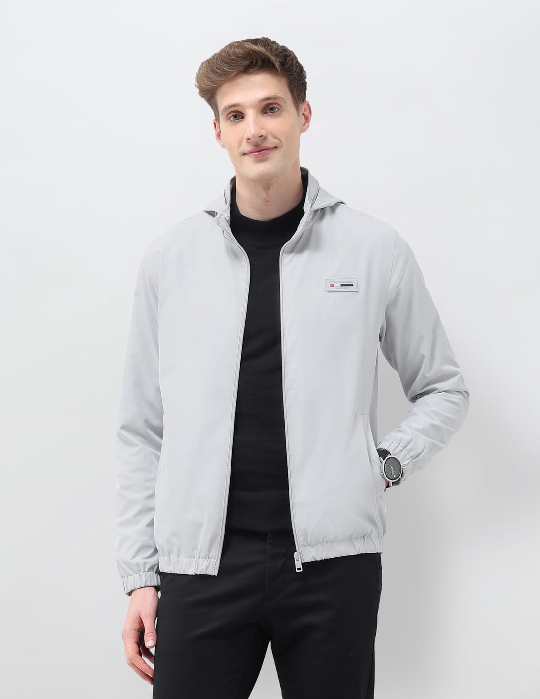 Regular Fit Solid Packable Hood Jacket